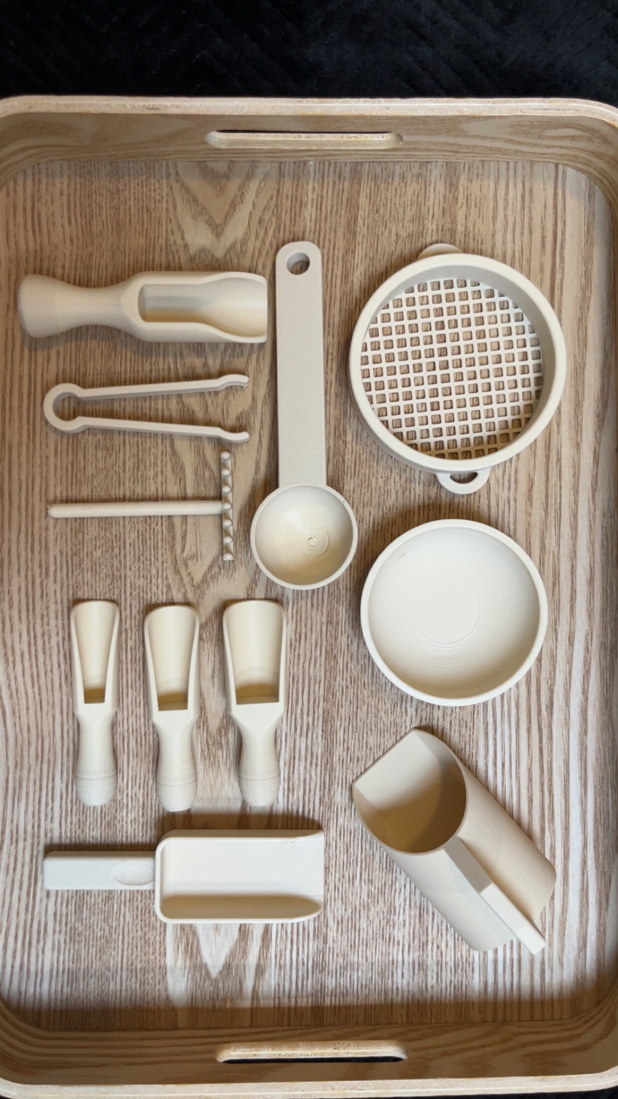 Deze speelset is met zorg gemaakt met een 3D-printer. Dit zorgt voor unieke vormen en een duurzame kwaliteit.