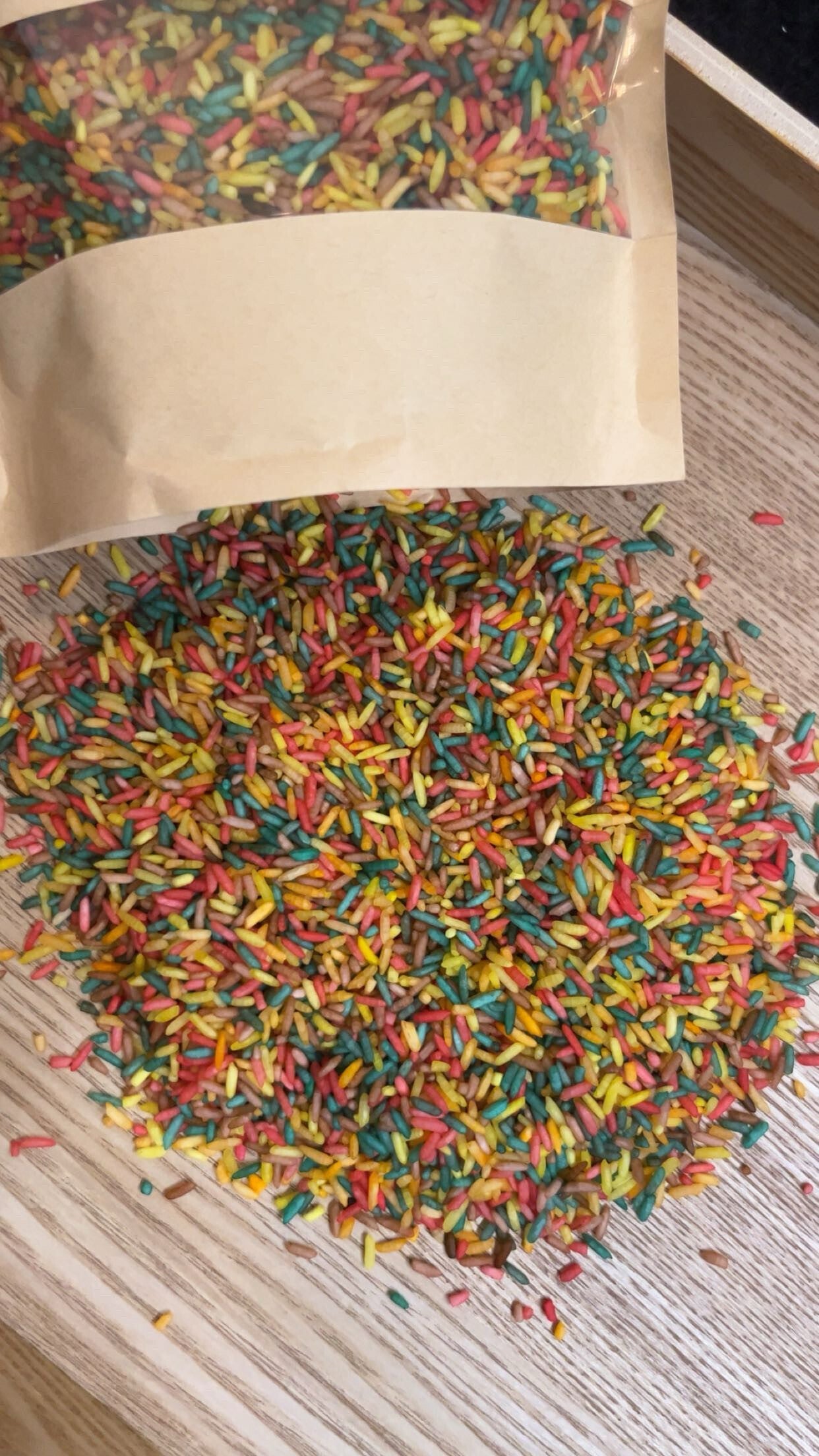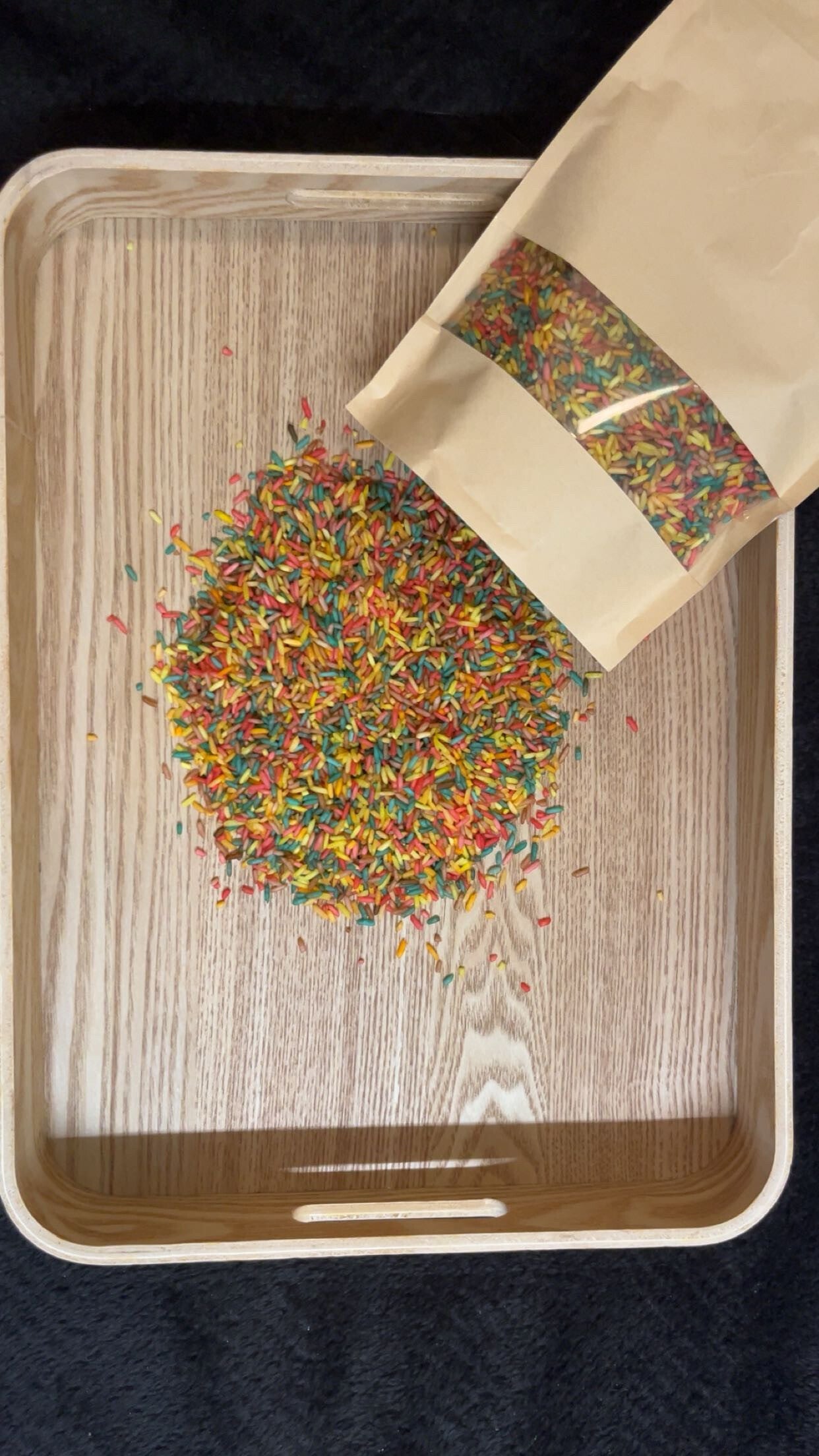 De rijst is perfect om te scheppen, gieten, zeven en mengen en kan gecombineerd worden met de vulvormen voor nog meer spelplezier. Andere kleuren zijn ook mogelijk — stuur me hiervoor even een berichtje.